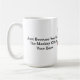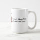 Vollen 15 Unzen dampfiger heißer Kaffee, Tee oder Kakao. Große hergestellte Tasse mit einem humorvollen Sprichwort.