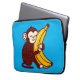 Das sonnige Bild eines Affen, der eine große Banane umarmt.