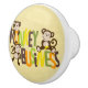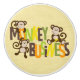 Helle und farbenfrohe Typografie zeigt klangvolle Affen mit "Affen Business" Text in grün, braun, orange und gelb. Hintergrund ist blassgelbes Leinen / Beinschleife-Look Textur. Große Akzente für Kinderzimmer oder Kinderzimmer