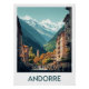 Affiche artistique d’Andorre illustrant une scène urbaine animée au cœur des montagnes, entre modernité et nature. L’ambiance conviviale des rues andorranes rencontre la majesté des sommets enneigés. Une décoration murale idéale pour les amoureux des paysages alpins vivants.