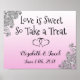 Affiche bonbon rose et noir texte L'amour est doux mignon pour mariage ou baby shower.