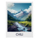 Admirez les paysages sauvages et grandioses du Chili avec cette affiche. Une rivière serpente à travers une vallée verdoyante, dominée par un sommet enneigé et majestueux. Parfaite pour une décoration murale inspirée de la nature et de l'aventure.