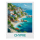 Affiche illustrée de Chypre avec ses maisons blanches en bord de mer et ses eaux turquoise. Une décoration murale idéale pour s'évader et voyager depuis chez soi.