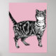Affiche d'art de chat tigré rayé rose mignon. Un design magnifique, issu de l'un de mes dessins.