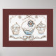 Trois cupcakes bleus en bleu clair et marron sont le point focal de cette affiche d'art. Le design est issu d'une peinture aquarelle originale.