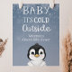 Bienvenue aux invités dans votre baby shower avec cette adorable affiche, avec un manchot mignon, un arrière - plan enneigé et le texte "bébé il fait froid dehors" Ajouter le nom de l'invité d'honneur, la date de douche et le texte de bienvenue personnalisé en utilisant les champs fournis.