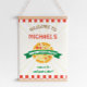 Attrape une tranche ! Bienvenue tout le monde à votre fête d'anniversaire pizza avec signe de bienvenue pizza tranche modèle. Ce panneau de fête d'anniversaire de pizza présente une tranche de pizza avec arrière - plan de boîte à crème sur une enseigne de style moderne.
