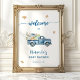 Poster d'Affiche de bienvenue Baby shower Citrouille Watercolor Blue Truck. Éléments correspondants disponibles.