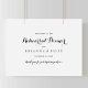 Ce panneau d'accueil de la répétition horizontale moderne est parfait pour une répétition mariage rustique. Le design sobre et élégant présente une typographie de script classique et sophistiquée en noir et blanc.