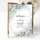 Panneau de bienvenue de douche de mariée géométrique à l'eucalyptus vert. Facile à personnaliser avec vos informations. Veuillez me contacter par chat si vous avez des questions sur l'œuvre ou si vous avez besoin d'une personnalisation. NOTE IMPORTANTE : Pour une assistance sur les commandes, l'expédition, les informations sur les produits, etc., contactez directement le service clientèle de Zazzle https://help.zazzle.com/hc/fr-fr/articles/221463567-Comment-contacter-le-Support-Zazzle-.