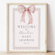 Bienvenue dans votre douche avec cette belle enseigne, avec un cadre à pétoncles avec un arc rose. Ajoutez le nom du client d'honneur, la date de la douche et le texte de bienvenue personnalisé en utilisant les champs fournis.