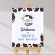 Bienvenue à vos invités avec notre adorable Affiche de bienvenue d'anniversaire de vache! Doté d'une petite vache sur un arrière - plan bleu, ce panneau est bordé de taches de vache ludiques. Parfait pour ajouter une touche spéciale à l'entrée de votre fête, ce panneau d'accueil donne le ton d'une fête amusante sur le thème de la vache !