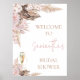 Blush Brown Floral Boho Fête des mariées Affiche de bienvenue Jolie boho sur le thème de la douche nuptiale signe de bienvenue avec un délicat arrangement floral et marron avec vergers, palmiers feuilles et pampas herbe. Ce panneau d'accueil de douche nuptiale est également doté d'une grande coupe de champagne.