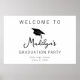 Bienvenue invités à votre fête de remise de diplômes avec cette Affiche de bienvenue! Ajoutez le nom de l'invité d'honneur, l'école de fin d'études et la date à l'aide des champs fournis.