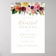 Ce signe d'accueil de la répétition florale boho or est parfait pour une répétition mariage moderne. Le design se compose de plumes sauvages brunes peintes à la main, jaune sauce, blanc, violet, rose, rousse, bordeaux et baies bleues soigneusement disposées en de beaux bouquets.