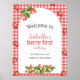Ajoutez une touche de charme à votre fête d'anniversaire avec notre belle affiche d'accueil à thème fraise! Conçu pour ravir vos invités et rendre votre fête d'anniversaire inoubliable.
