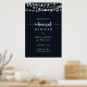 Ce panneau rustique à cordes clair de répétition dîners de bienvenue est parfait pour une simple répétition mariage. Le design présente de belles lumières à cordes peintes à la main dans un arrière - plan bleu foncé.