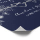 Elégante affiche d'accueil moderne bleu marine mariage avec coeur simple en corde argentée et dentelle dorée fleurie.