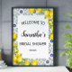 Citron et Carreaux Bleus Affiche de bienvenue Fête des mariées Cette douche nuptiale bienvenue modèle douche nuptiale combine deux polices différentes pour un look plus dynamique.