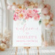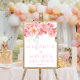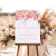 Ce panneau d'accueil pour la douche nuptiale est décoré dans un style floral rose pâle. L'en-tête de script est une image qui ne peut pas être modifiée. Tous les autres textes sont entièrement modifiables. Pour une personnalisation plus avancée de cette conception, il suffit de cliquer sur le bouton "Customiser" ci-dessus.