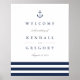 Conçu pour correspondre à notre collection de mariages Nautical Mix, cet élégant panneau de style côtier est parfait pour accueillir les invités à votre cérémonie de mariage ou réception. Personnalisez les champs de texte avec votre message de bienvenue, vos noms et votre date de mariage, ornés d'un trio de rayures bleu marine nautique et d'une ancre en haut.