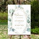 Ce panneau d'accueil mariage est orné d'eucalyptus à l'aquarelle peinte et de feuilles verts botaniques avec cadre géométrique or. Pour une personnalisation plus avancée de cette conception, cliquez sur Personnaliser Autre lien pour modifier la police, la taille et la couleur.