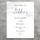 Cet élégant panneau d'accueil mariage en noir et blanc peut être personnalisé avec vos informations en typographie chic. Conçu par Thisisnotme©