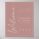 Affiche de bienvenue minimale de Mariage de script rose poussiéreux. Impressionnez avec élégance vos invités mariages avec ce panneau d'accueil mariage or rose branché qui affiche un magnifique script blanc sur un arrière - plan rose poussiéreux. Cette enseigne d'accueil mariage est d'un superbe design rose or et blanc, aux ambiances modernes et minimes, parfait pour votre mariage simple, tendance et minimaliste. La disposition minimaliste et élégante attire l'attention sur le script blanc, en contraste avec l'arrière - plan rose poussiéreux. Cette enseigne de bienvenue mariage donne le ton d'un bel ensemble mariage, entouré de fleurs d'or blanc ou rose, et d'une décoration mariage neutre assortie. Un complément parfait à toute célébration mariage rose pâle et feutrée. Le Collectif du dimanche © par Rachel Hannah Gee