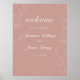 Accueillez vos invités avec cet élégant panneau d'accueil, conçu avec un arrière - plan en terre cuite et des oeuvres d'art florales dessinées à la main. Parfait pour un mariage boho ou rustique, ce panneau ajoute une touche chaleureuse et accueillante à votre entrée. Le design floral minimaliste ouvre la voie à une fête pleine de chaleur, de style et de charme artistique.