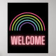 Un arc-en-ciel néon et un grand texte "bienvenue" crée un message d'inclusion pour tous dans ce panneau d'affichage qui peut être utilisé pour les entreprises, les écoles, les clubs et plus encore.