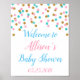 Texte personnalisé affiche de bienvenue pour baby shower ou fête d'anniversaire en bleu clair, rose clair et parties scintillant d'or motif confetti. Parfait pour un sexe révèle le baby shower.