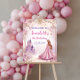 Accueillez vos invités à une célébration royale avec cette affiche de bienvenue pour anniversaire de princesse rose pour filles ! Conçue avec un magnifique thème de couronne de princesse rose et or, elle est parfaite pour ajouter une touche d'éclat à la fête de votre enfant. Personnalisez-la avec le nom et l'âge de votre petite princesse pour un effet magique et personnel. Idéale pour les entrées d'anniversaire, les décors de photo ou les présentoirs de table de fête, cette affiche complète votre décoration sur le thème de la princesse !