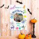 Poster d'accueil de fête d'anniversaire avec motifs d'Halloween illustrés. Au centre, vous pouvez customiser l'affiche avec le favori de votre bébé et vous pouvez modifier tout le texte qui sort. Sur le dos, un tirage avec des fantômes drôles volant. (Photo de Alvin Mahmudov d'Unsplash.)