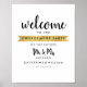 Élégant panneau de bienvenue pour la fête de fiançailles noir, or et blanc. Le design présente un ruban doré et une combinaison de texte écrit à la main et de typographie moderne. Personnalisez le design en remplaçant le texte exemple. Des produits assortis et coordonnés sont également disponibles dans notre magasin. Contactez le concepteur pour des demandes de personnalisation du design.