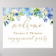 Affiche de bienvenue pour une fête de fiançailles à fleurs bleues poussiéreuses