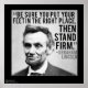 Vous consultez une affiche de Rick London créée exclusivement pour RickLondonDesigns.com. Cet article présente un graphique d'Abraham Lincoln et l'une de ses citations les plus célèbres, "Assurez-vous de mettre les pieds au bon endroit, puis tenez bon. Nous pensons que vous apprécierez votre commande, tellement que celle-ci est accompagnée d'une garantie de remboursement à 100 % pendant 30 jours si vous n'êtes pas entièrement satisfait pour quelque raison que ce soit, sans poser de questions. Merci d'avoir choisi RicklondonDesigns.com. Bon shopping.