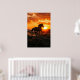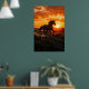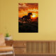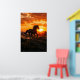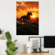 Apportez du mouvement, de la chaleur et du caractère western dans votre espace avec cette affiche de coucher de soleil avec cheval représentant un cheval noir en course sous un ciel doré-orange vibrant.