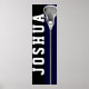 Dessin de bâton de crosse sur fond bleu marine. Modifiez le texte pour ajouter le nom du joueur.