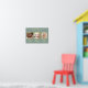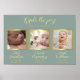 Affiche élégante, belle et mignonne de couleur sarcelle et or conçue pour les photos de bébés triplés nouveau-nés et l'art mural des paramètres de naissance.