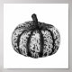 Affiche avec illustration de citrouille en pointillisme noir et blanc.
