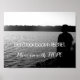 Image en noir et blanc de l'homme qui surplombe le lac avec une citation inspirante, "Ne regardez pas en arrière dans le regret. Poursuivez avec espoir."