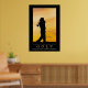 Poster de golf avec la silhouette d'un golfeur qui conduit au coucher du soleil et avec les mots "Golf Trompeusement simple, infiniment compliqué"