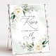 Affiche de jeu de douche nuptiale avec des bisous de verdure et d'eucalyptus.