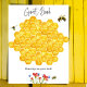 Doux et tendance Ce que sera le bébé Thème abeille Baby Shower neutre en genre Livre d'or Affiche de signalisation aquarelle jaune miel, abeilles, nids d'abeilles, fleurs sauvages rouges et bleues. Vous pouvez trouver des produits assortis dans la collection.
