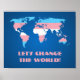 Poster de valeur avec transgenre rainbow stripes carte du monde, drapeau de la fierté trans sur arrière - plan bleu, Let's Change the World Texte modèle, par pinkbrickroad