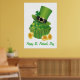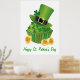 Joyeux St. Patrick's Day Leprechaun Casquette, Pièces d'or et Cupcake avec trois Shamrock de trèfle de feuille saupoudrer Dessert Illustration de festive Dessin Poster