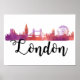 Une aquarelle de la skyline de Londres avec le nom "Londres" en grandes lettres.