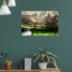 Avec une vue imprenable sur une Vallée des Cerfs avec de l'herbe verte et quelques cerfs qui courent au centre de la vallée.Avec une petite crique qui va jusqu'au centre de la vallée.Voici une belle photo sur cette affiche
