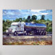 Un grand bateau-citerne blanc de carburant attrape la lumière du soleil de début de la matinée sur son chemin en bas d'une route du Nouveau Brunswick. Cette conception est créée comme hommage aux hommes et aux femmes consacrés qui roulent vers le bas nos routes fournissant les biens nécessaires et les services et continuent nos grandes nations courir sans à-coup. L'affiche parfaite pour n'importe qui qui aime des camions et l'entraînement. Créé par Skye de zazzle.com/ravenspiritprints.