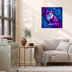 Cette affiche de fractales de chats violets ASMR montre une image d'un beau chat violet contre un arrière - plan fractal turquoise et violette. Idéal comme cadeau de chauffage domestique et pour ASMR.